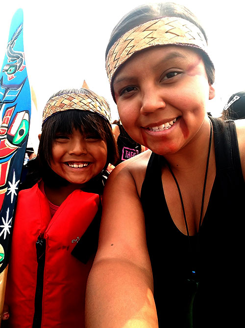 Curraín started the “Peace In Peace Out Portrait Project” with a Swinomish Lushootseed language class led by Swinomish youth leader Alana Quintasket. Lushootseed words were painted in a final painting the youth made of Swinomish Elder Marie Wilbur. During the 2011 Swiniomish Canoe Journey, native youth were given a camera to document a family elder with the support of Robin Carneen and the Kee Yoks, Swinomish Tribal Newspaper.